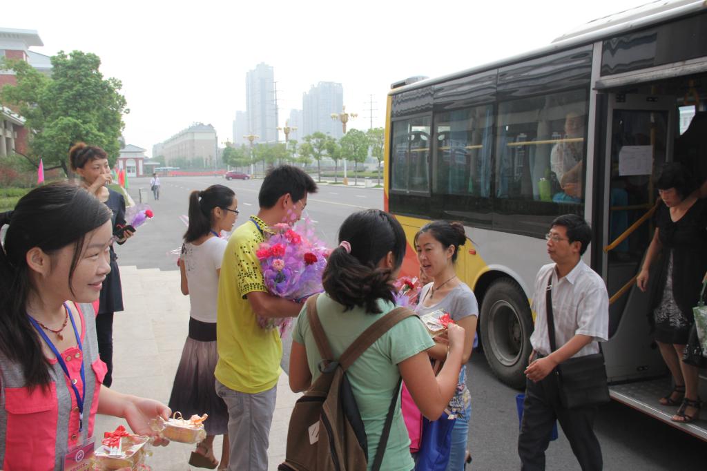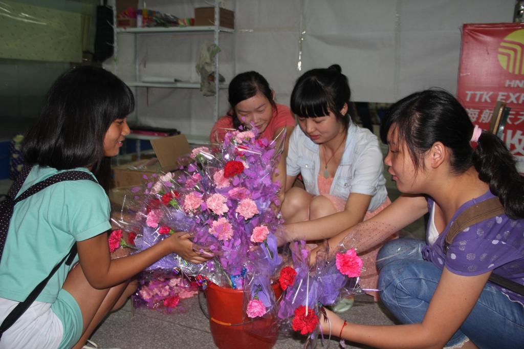 上午,学生会的学干们将他们亲手包装好的康乃馨及一个个月饼送到了今天来上课的老师手中,礼物虽轻,但同学们的诚挚的心意却让老师们非常感动。