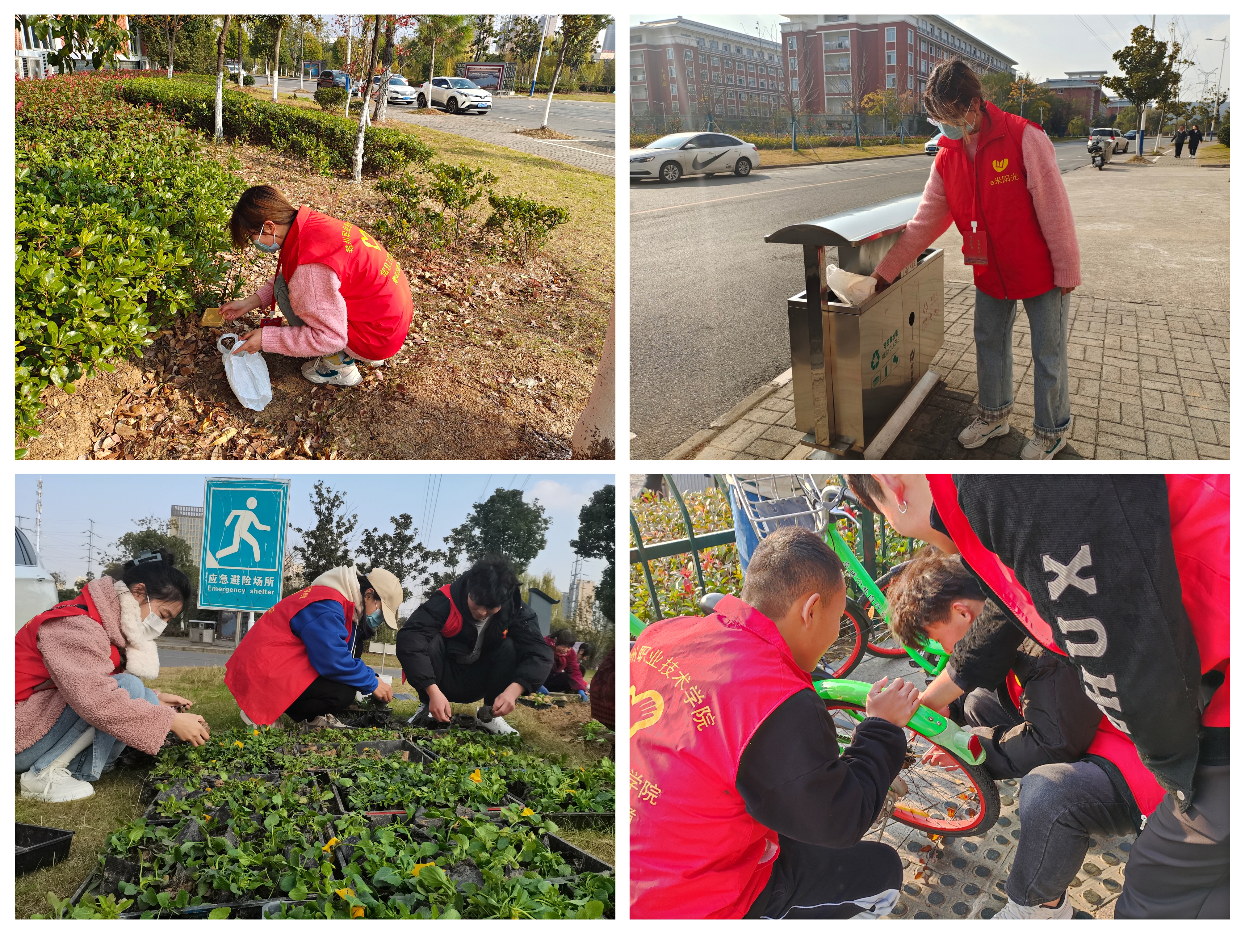 活动中,志愿者们根据分组到学校的各个地方,各小组分工明确,工作开展的井然有序。志愿者们分散到校园内周边绿化带、马路及建筑物外侧公共区域对生活垃圾、烟头纸屑等各类垃圾进行集中捡拾,每到一处卫生死角都不放过。同时,志愿者们还将各教学楼下的电动车整齐排放。志愿者们个个干劲十足,大家充分发扬不怕脏、不怕累的精神,用实际行动倡导绿色生态环保理念。
