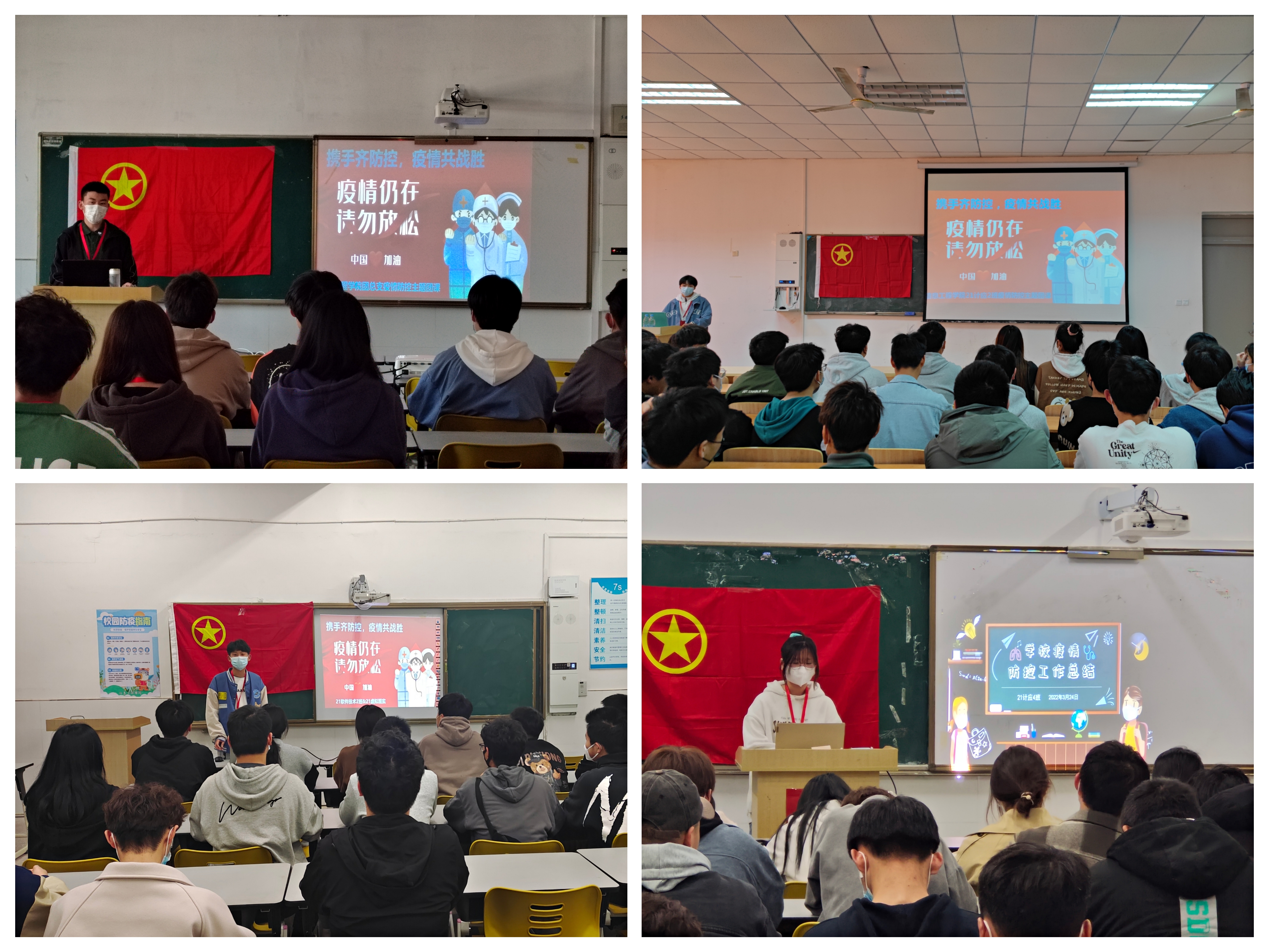 当前国内疫情防控形势极为严峻。为积极引导我院广大青年团员正确认识疫情防控形势,强化疫情防控意识,有效弘扬抗疫精神,坚定战胜疫情的必胜信心。信息工程学院团总支组织各团支部于3月28日至30日在各班级开展了“携手齐防控,疫情共战胜”的主题团课活动。