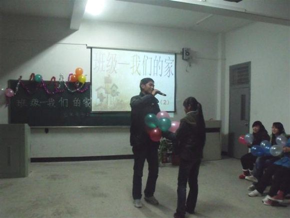 2010年12月15日下午3点,09电子(2)班在2504教室举行了一场题为“班级,我们的家”的主题班会。本次班会内容丰富,形式多样,有趣味横生的游戏,也有精彩迭出的小品,也有美妙动听的歌声……班会还以图片展的形式再现了过去的一年半里同学之间一起走过的岁月,许多同学感动得潸然泪下。