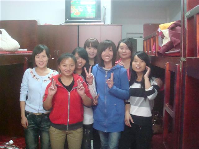 图为同学们在厂方提供的宿舍里和辅导员留念