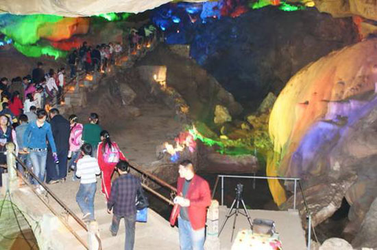 大家又来到因山暖多产野韭菜而得名的韭山洞风景区,其距今已有五亿年地质历史,为喀斯特溶洞。被专家誉为“江北第一洞”。其特点深、大、险、奇、古。其曲折盘旋,奥妙无穷,让人回味连连。