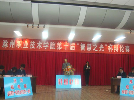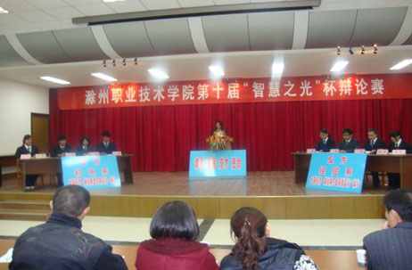 2010年11月24日下午5:00,由基础部承办的院第十届“智慧之光”辩论赛决赛在老校区六楼多功能厅正式展开。本次比赛邀请到院团委李超副书记,基础部思政教研室李爱红、胡兆胜、胡颖颖、张家莉、顾峰、焦春才等老师作为评委。