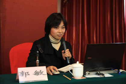 图为我院基础部郭敏老师在大会进行交流发言