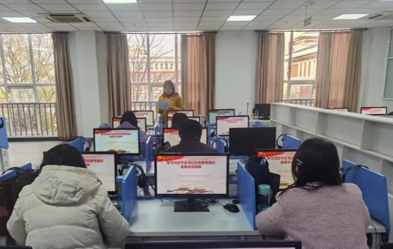 12月6日下午,基础教学部教工第二党支部在综合楼211会议室开展学习贯彻习近平新时代中国特色社会主义思想主题教育研讨会,会议由党支部书记冯香丽主持,全体党员教师参加学习研讨会。