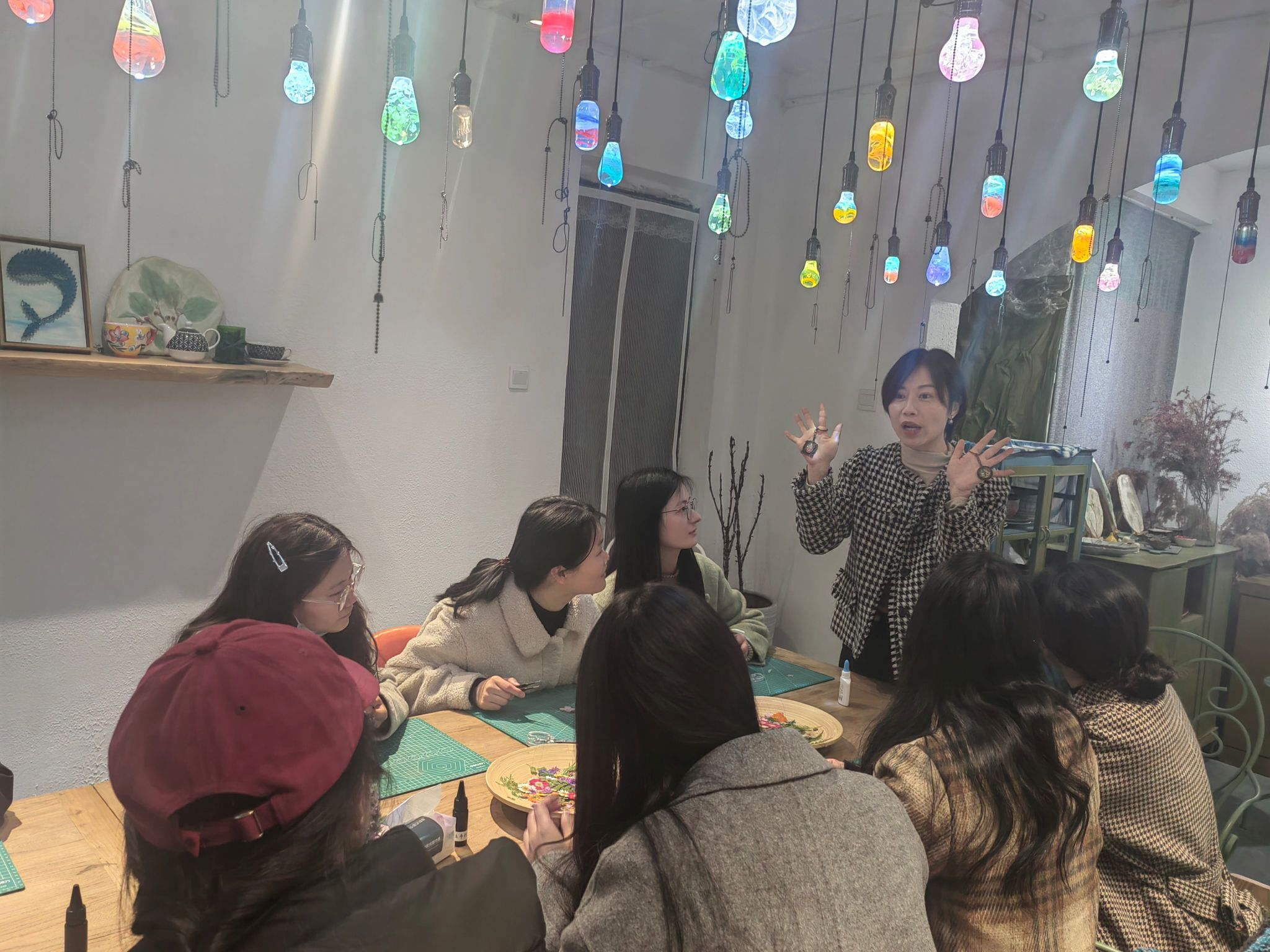 在押花首饰制作环节,女教职工们怀着浓厚的兴趣,亲自参与到材料的选择、拼贴与装饰的每一个环节中。她们用灵巧的双手,将一片片材料精心组合,编织成一个个充满创意与个性的手工艺品。不仅锻炼了女教职工们的动手能力,更让她们深刻体会到了传统手工艺所蕴含的精湛技艺与深厚文化内涵。