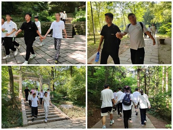 在我院志愿者们“一牵一”的陪同下,“星星家园”的孩子们从琅琊山北门游客中心徒步出发。在经过了醉翁潭和深秀湖后开始沿着“天蹊云径”拾阶而上。刚开始“星星孩子”爬的很快,但随着高度的增加,“星星孩子”和志愿者的速度都慢了下来,在经过几次停留休息后顺利的到达了南天门。在南天门摄影留念休息了一段时间后又沿着“二九径”石阶下山,随后便返回了琅琊山北门游客中心。