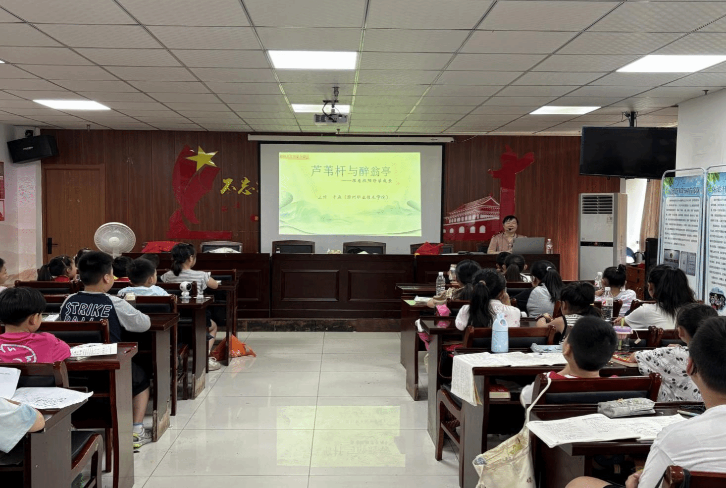 7月18日,教研室主任平燕开启了暑期支教活动的首场课程。结合滁州地方文化和欧阳修的人生经历,平老师通过扎实的专业素养、活泼的教学语言和富有启发性的讨论引导,给孩子们上了一堂题为《芦苇杆与醉翁亭——跟着欧阳修学成长》的课程。孩子们在“荻杆划字”“醉翁之意”的故事中感受欧阳修“一代文宗”的成长历程,沉浸式体悟“六一风神”的人格魅力。