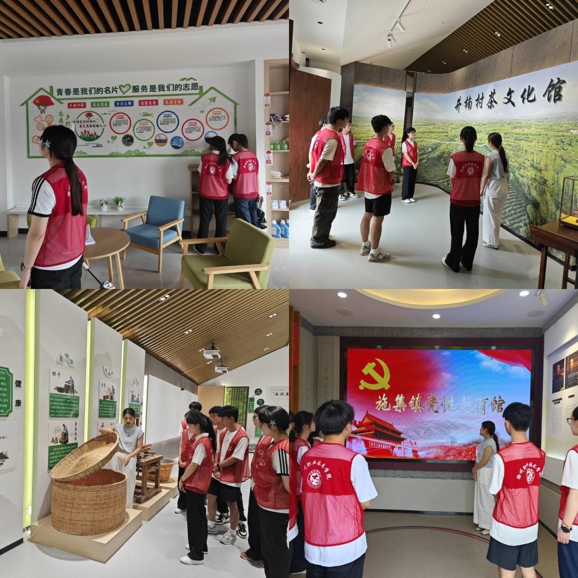 在专业讲解员的带领下,实践团队依次参观了青年之家、茶文化馆和党性教育馆。走进青年之家,各类活动设施完备齐全,创新的积分制管理点燃了乡村青年的热情。团队成员感受到这里不仅是交流学习的温馨港湾,更是激发乡村创新活力的前沿阵地。茶文化馆内,从茶叶的种植采摘到制作品鉴,丰富的展品和详实的讲解,让学子们对井楠茶产业的历史脉络、精湛工艺和文化底蕴有了系统而深刻的认知。党性教育馆中,借助丰富详实的史料与生动鲜活的展示形式,让团队成员深刻体会到红色引擎的驱动作用。“我们秉持‘茶村生态为先,乡村振兴为主,茶文化为魂,茶休闲为魄’的理念,打造山美、水美、茶香融合的美丽乡村。”讲解员的话语中充满自豪。