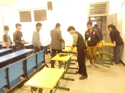 为了推进群众路线教育实践活动,加强“四库”建设,解决实际问题,经济贸易系党总支经过调研发现,一段时间以来,系教学楼教室课桌椅存在较为严重的混乱、缺损和缺失现象,对正常的教学秩序造成一定的影响。系党总支、团总支为了服务教学中心工作,维持正常教学秩序,对这一状况进行了分析和部署,并于4月25日组织团学干积极行动,进行了整改。