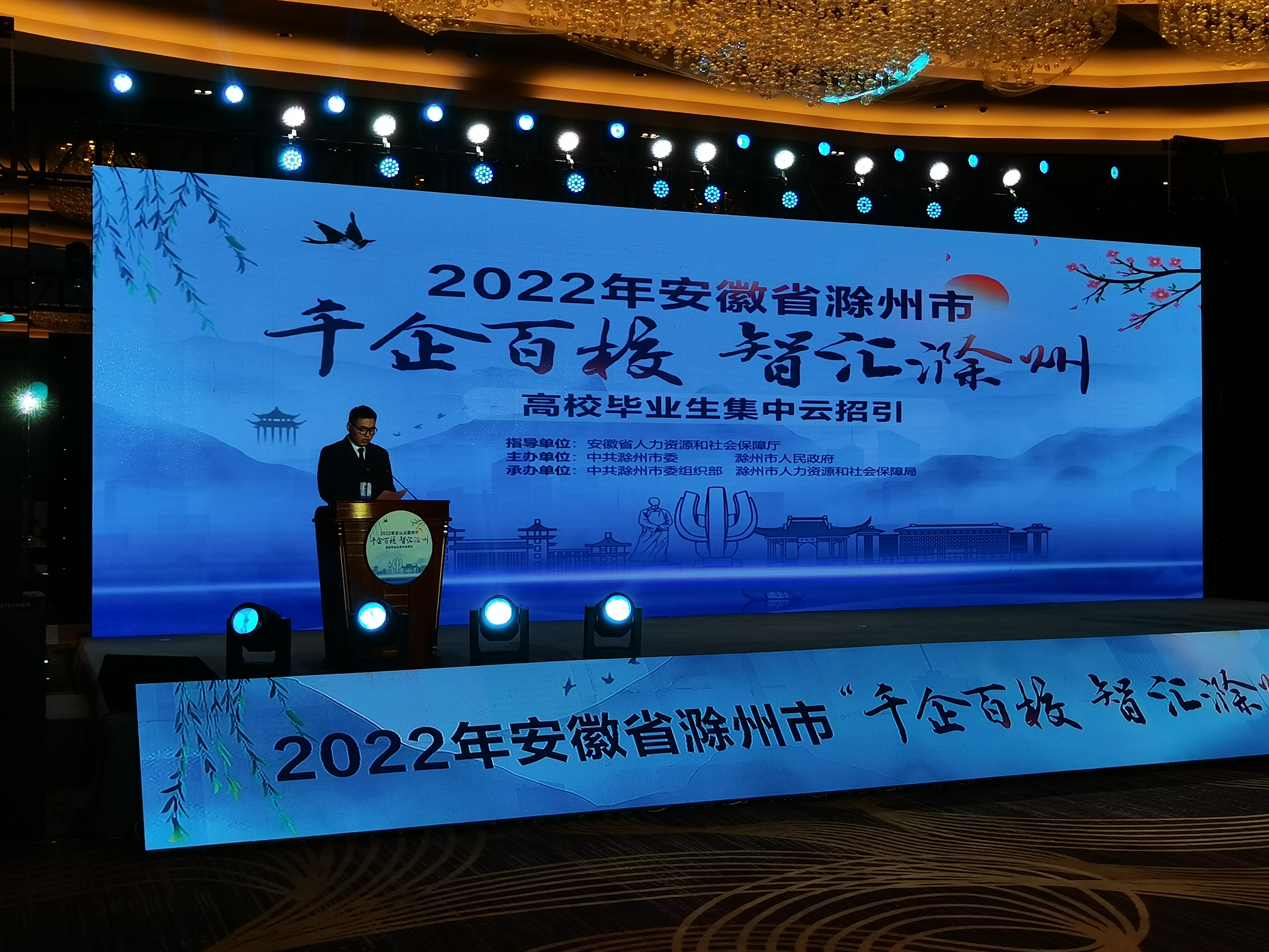 吴劲在主持活动时表示,近年来,滁州市委、市政府大力实施人才强市战略,全面创新政策、创造平台、创优环境,形成了青年人才加快融入、高端人才加速集聚的良好局面。接下来,我们将始终坚持人才是第一资源、就业是最大民生,为企业“搭台”、与高校“牵手”、让人才“唱戏”,以更优的政策、更好的服务集聚更多人才来滁创新创业。