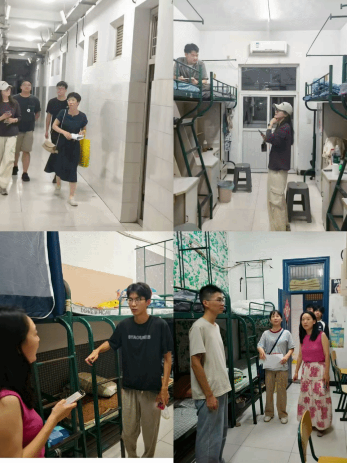 走访过程中,吴佳佳,倪子旭等辅导员们逐一走进每间新生宿舍,与同学们亲切交谈,详细了解新生的住宿环境、生活需求,仔细检查宿舍水电安全、设施配备情况,针对同学们提出的床铺调整、生活用品采购等问题,现场记录并协调解决。同时,辅导员们主动询问新生的入学适应情况,分享校园生活小贴士,包括食堂就餐、图书馆借阅、快递收发等实用信息,帮助新生快速熟悉校园布局。