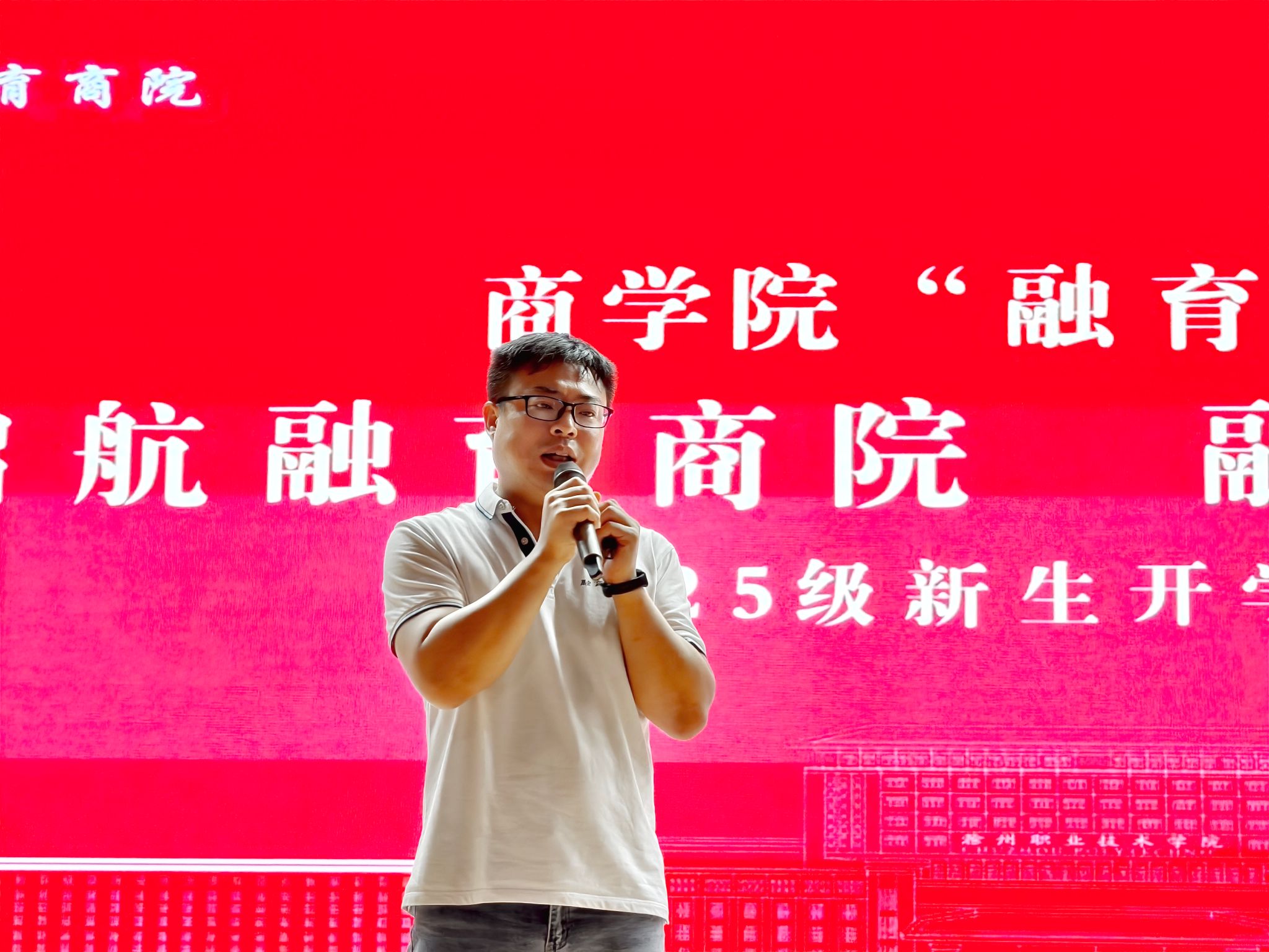 程震以“命运共同体”视角切入,解析“五育并举”内涵:以德立商、以智启真、以体强身、以美浸润、以劳砺志;并指出学院将依托“融创践行”机制,纵深推进产教融合、专创融合,通过课程、项目、竞赛、孵化四链协同,全面提升学生行动力与执行力,培养德才兼备的复合型高技能商科人才。报告结束后,程震就专业学习、职业规划等提问与新生互动交流,回应严谨详实,现场反响热烈。