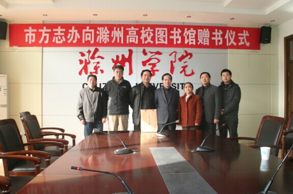 12月1日,滁州市地方志办公室向滁州市委党校、滁州学院、太阳集团tyc9728、滁州城市职业学院等市内四所高校赠送《滁州市志》。赠书仪式在滁州学院图书馆举行,市地方志办公室副主任许恒贵及上述四所高校代表出席赠书仪式。 滁州学院图书馆馆长辜庆志代表四所院校对市地方志办公室向捐赠志书表示感谢。此次赠书进一步增进各高校学院对滁州市情和地方志工作的了解,推动双方进一步的合作与交流。双方还就资源共享、合作等事项进行探讨。