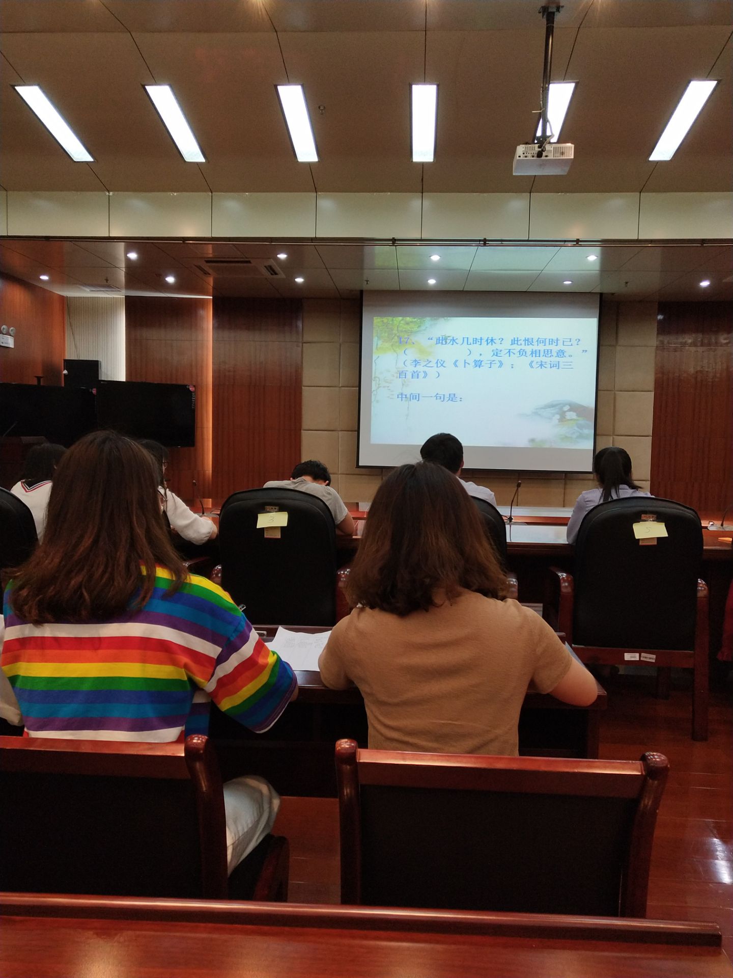 中华诗词决赛时间是2018年5月18日晚上19:00,地点在综合楼11楼会议室。刘涛老师一共出了三轮试题既有诗词接龙题,也有诗词选择题。题目难度逐轮略有增加。此次出题范围仍然是《诗经》《楚辞》《唐诗三百首》《宋词三百首》以及常见的古典诗词。