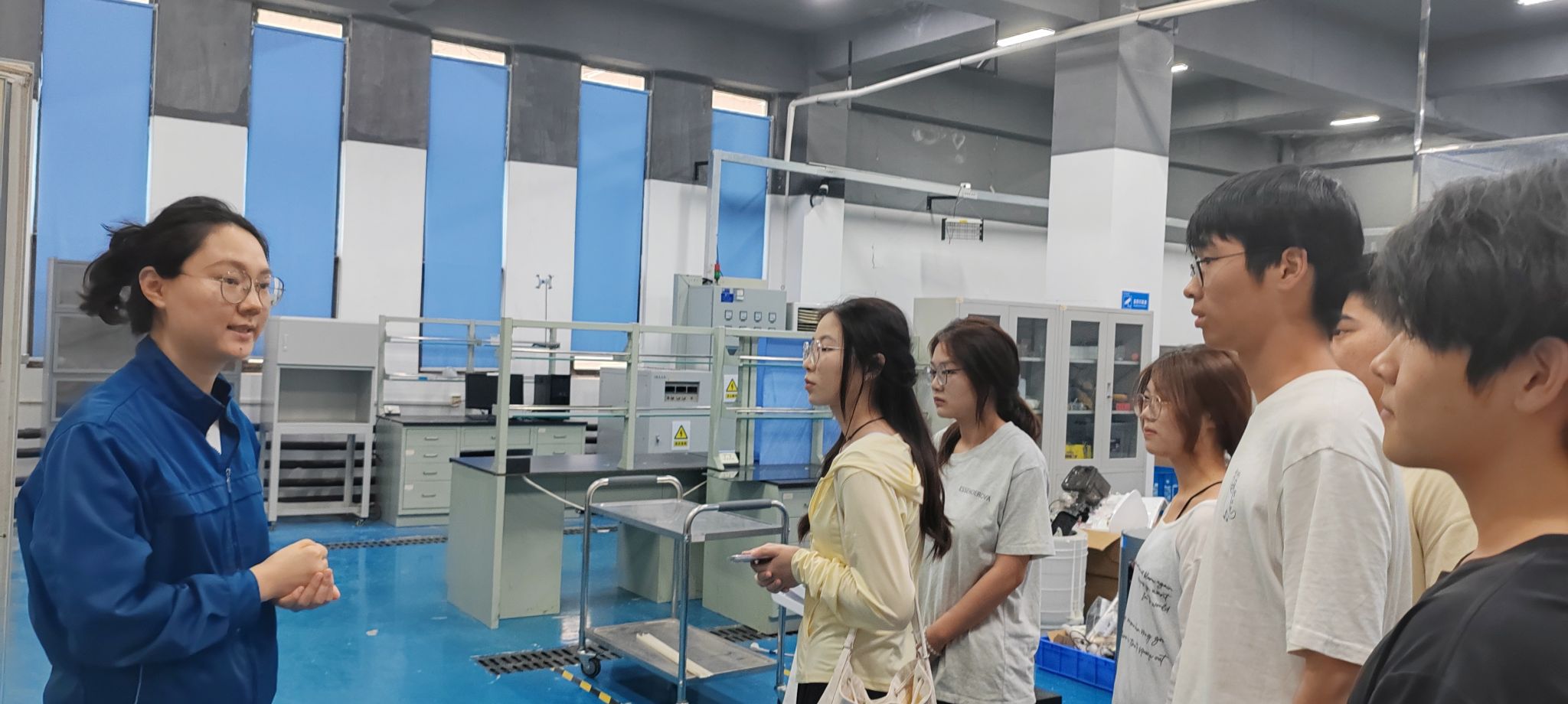 应用电子技术专业产业教授安徽中认倍佳公司刘杰副总经理向24级应用电子专业学生介绍企业文化,随后张月主任带领师生参观洗衣机热水器性能实验室、电波暗室、微生物检测实验室、材料燃烧实验室等相关实验室。